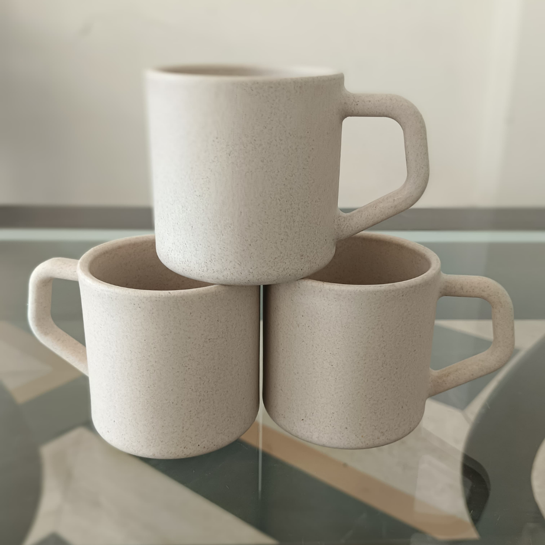 Made from natural rice husks and bamboo fiber, materials that would otherwise go to waste, each mug offers a unique earthy texture and modern appeal. To enhance durability, a safe, food-grade polypropylene binder is added — ensuring the mug is lightweight yet sturdy for daily use.